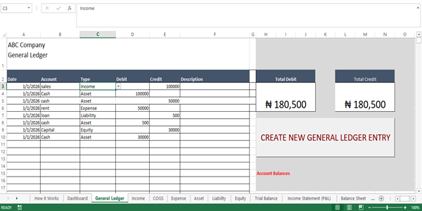 This Complete Accounting Excel Template is a powerful, all-in-one financial management solution designed to function just like professional accounting software such as QuickBooks and Sage 50. Built on a robust General Ledger engine, it allows users to post transactions through intuitive macros that automatically apply double-entry accounting rules. Every transaction entered into the General Ledger is instantly reflected across individual ledgers including Assets, Liabilities, Income, and Expenses, ensuring accuracy, consistency, and full audit control without requiring expensive software subscriptions.