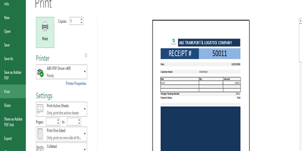 In addition, the template includes receipt issuance, reporting, and performance analysis tools that support better decision-making. You can generate professional receipts for customers, analyze revenue trends, track unpaid shipments, and view summary reports from a central dashboard. This Excel template is ideal for businesses looking for a cost-effective, offline, and customizable logistics management system that improves organization, accountability, and profitability.