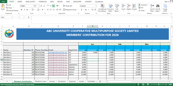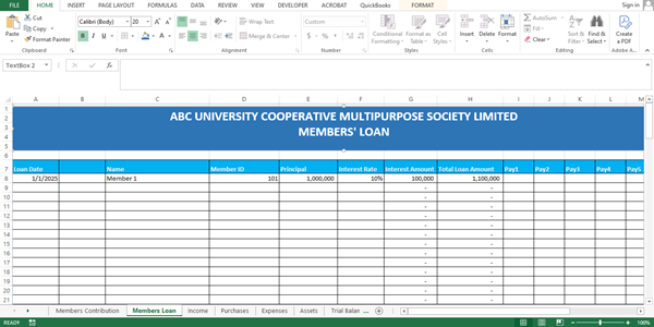 This Excel template is a powerful, easy-to-use financial reporting tool designed specifically for cooperative societies and thrift organizations. It features a structured input model where users can conveniently enter all financial transactions, including member contributions, loans, savings, and expenses. With this data, the template automatically generates key financial reports such as the Income Statement (Profit & Loss Account), Statement of Financial Position (Balance Sheet), and Statement of Cash Flows, helping you stay compliant and make informed financial decisions with ease.